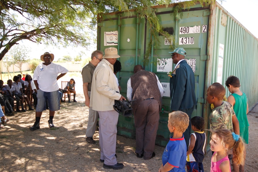 Im Dezember 2011 kommt unser Container endlich in Otjiwarongo an. Dank Mr. Neumbo's Einsatz - er ist der Direktor der Karundu Primery School - läuft alles reibungslos.