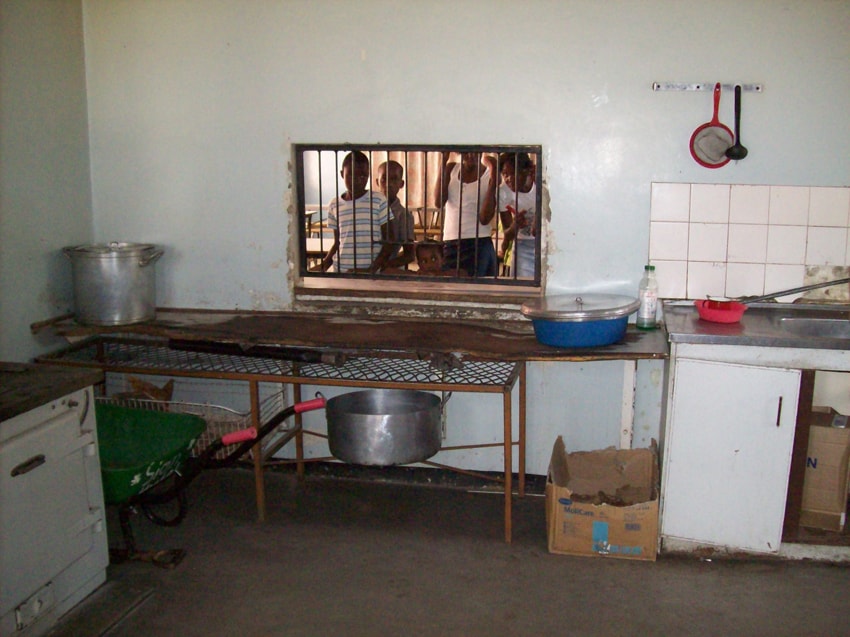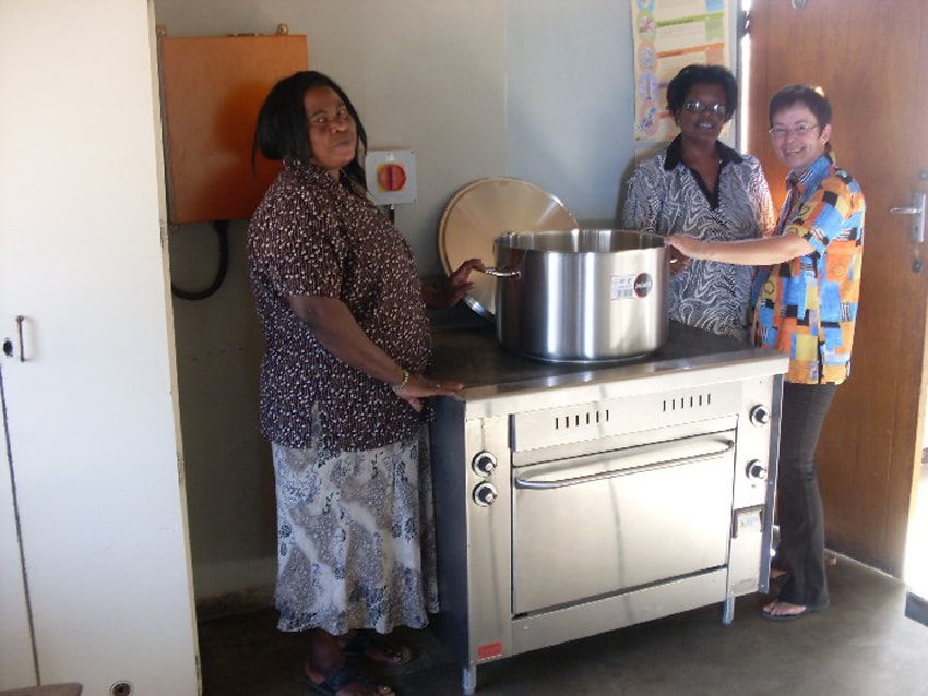 Erst wurde der falsche Ofen aus Windhoek (250km entfernt) geliefert, als dann der richtige da war, passte der nicht durch die Tür. So mussten wir erst ein Stück Mauer einreißen und dann wieder aufbauen. Außerdem wurde ein neuer Topf angeschafft.