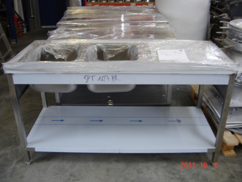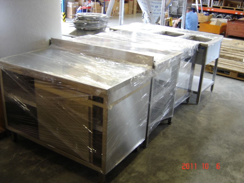 Eine neue Spüle und zwei Tische aus Edelstahl sind im Container und werden dem Sion Hostel im Dezember übergeben.