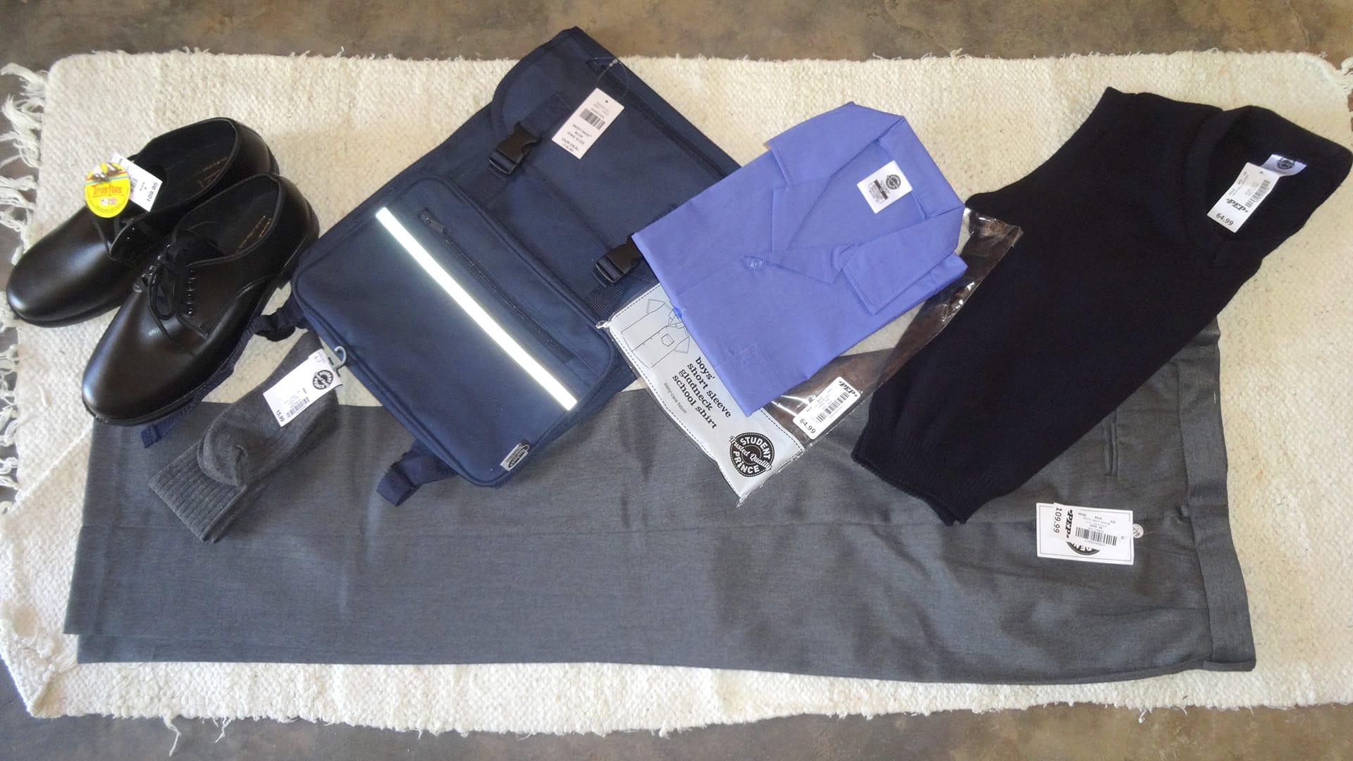 Alle Schuluniformen und das Schulmaterial wurden von uns dort gekauft, anschließend den Kindern übergeben und anprobiert.