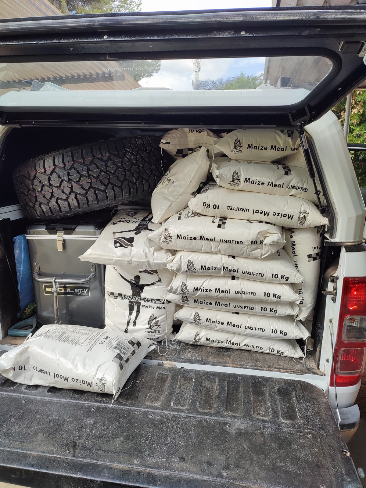 Es werden Großeinkäufe getätigt, so dass unser Mietwagen mit 1 Tonne Maismehl (100 x 10 kg) an seine Grenzen kommt. Da der Preis aber gut war, muss es gekauft werden!