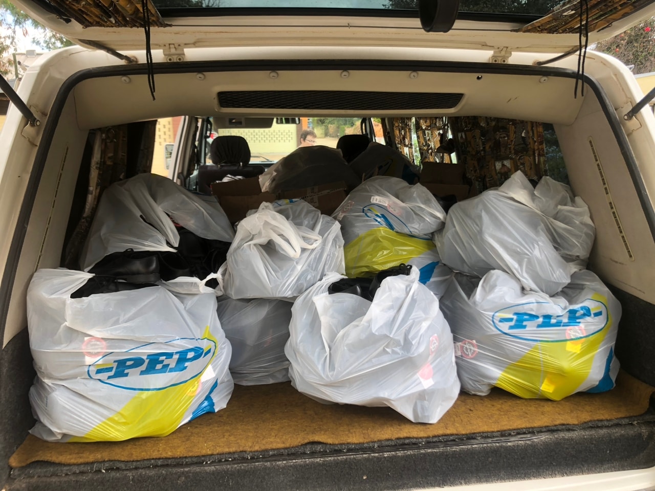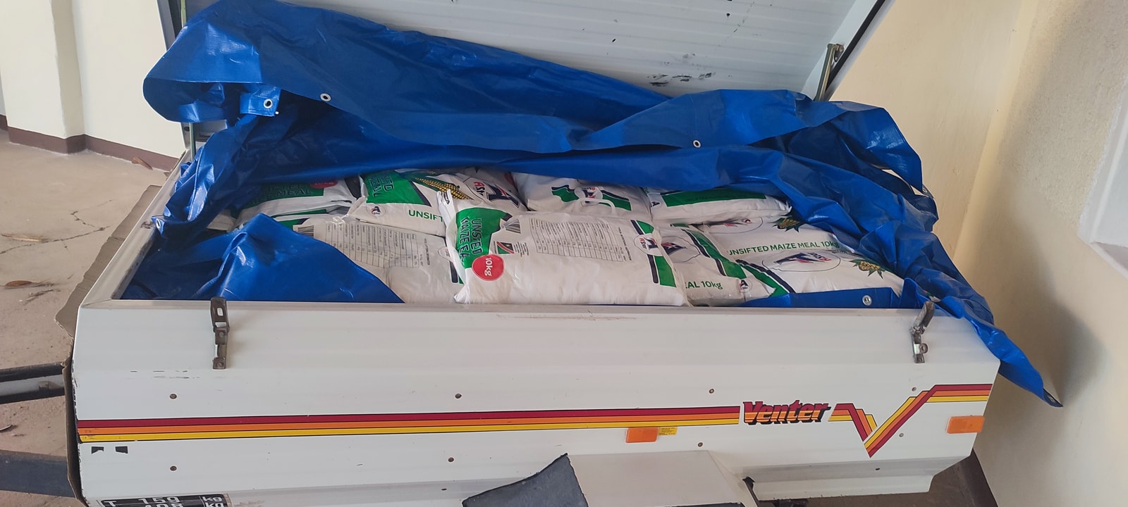 Erneut kaufen wir 100 Säcke Maismehl ein, ebenso Tütensuppen, Hygieneartikel und sogar 250 Pakete Kopierpapier für den Schulbeginn im Januar 2024. Das ist zwar sehr zeitig, aber das Kopierpapier ist bei Spar mit N$ 72,99 im Angebot und wir können nicht widerstehen.