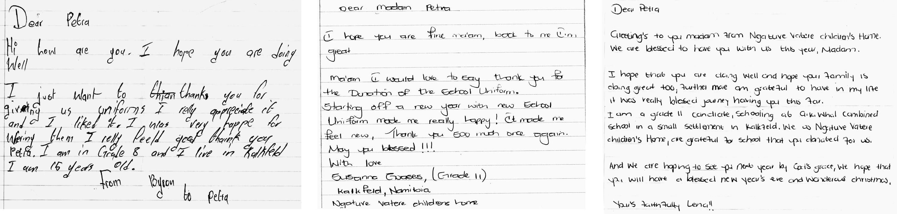 Da wir viele Dankesbriefe von Kindern und Studenten erhalten, habe ich eine kleine Auswahl rausgsucht.